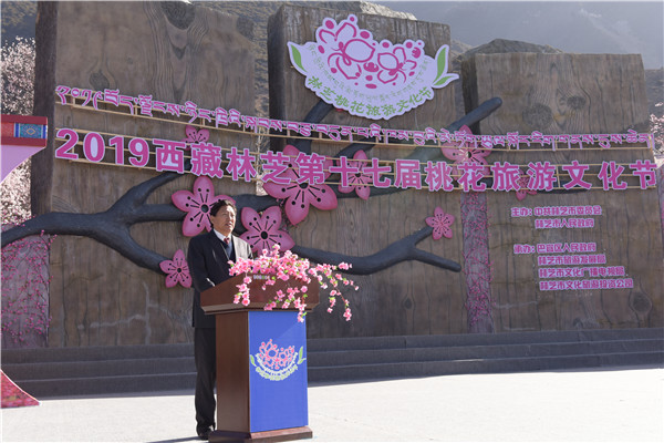 市委副书记、市长旺堆为开幕式致辞并宣布西藏林芝第十七届桃花旅游文化节开幕。