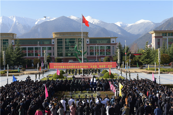 林芝市隆重举行纪念西藏民主改革60周年 “升国旗 唱国歌”活动