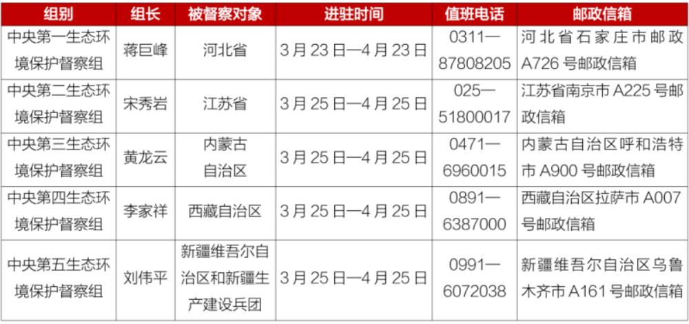 第二轮第六批中央生态环境保护督察进驻一览表