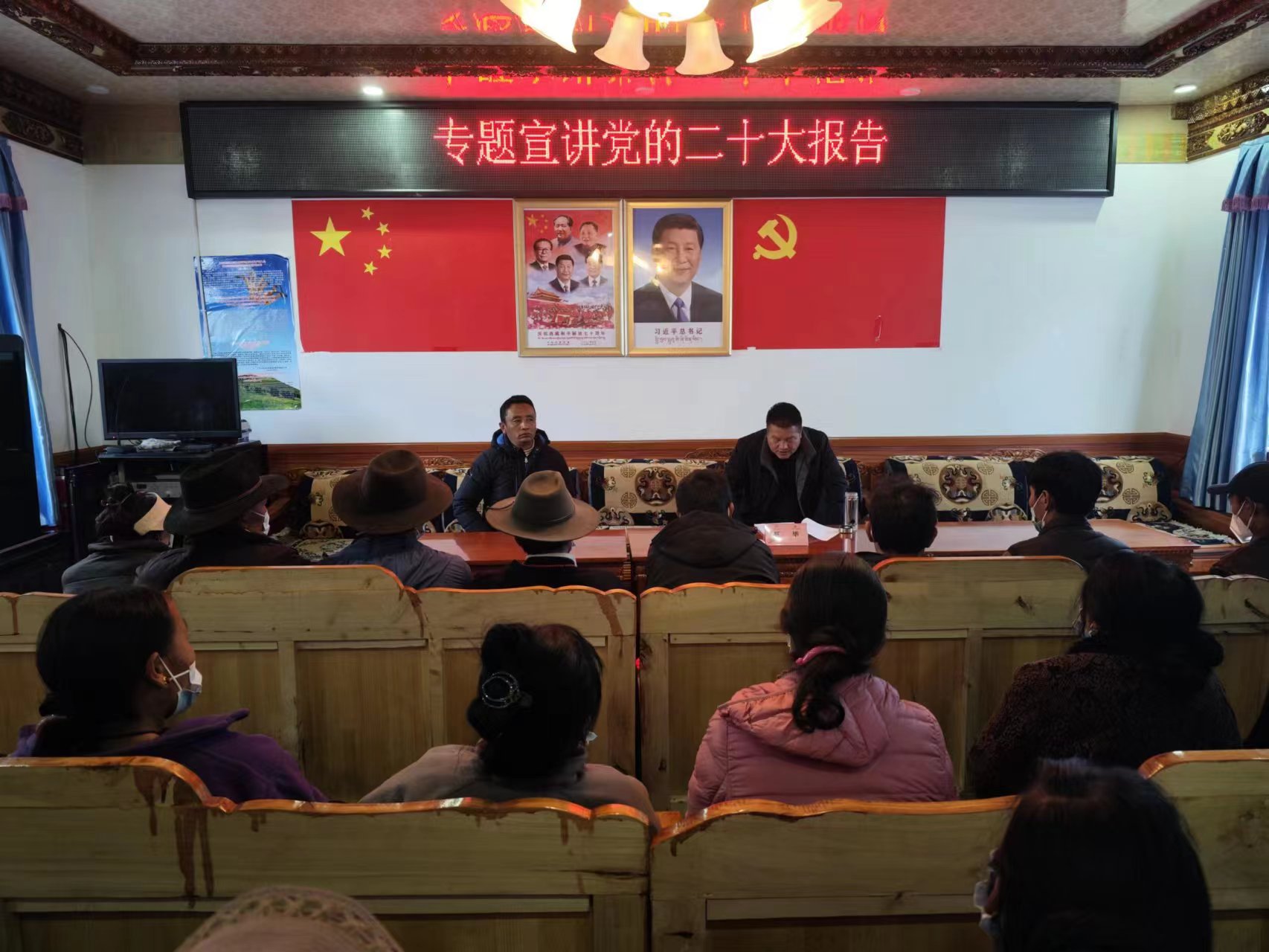 近日,县人大常委会主任旺毕深入朱拉乡扎热村、坝村专题宣讲党的二十大精神。各村村“两委”、党员、群众共计120余人参加。
