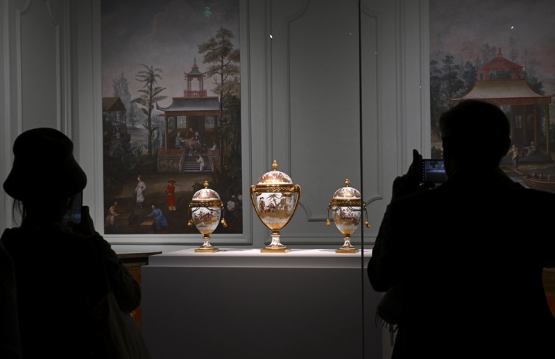 2024年4月1日,观众在北京故宫参观“紫禁城与凡尔赛宫——17、18世纪的中法交往”展览。新华社记者 金良快 摄