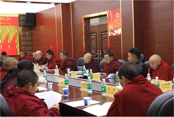 王启展与宗教界代表人士亲切握手、互致问候。5名宗教界代表人士结合自身实际,围绕铸牢中华民族共同体意识、藏传佛教中国化、“三个意识”教育等主题谈体会、说变化,充分表达了听党话、感党恩、跟党走,坚决拥护人民领袖、拥护社会主义制度,旗帜鲜明反对分裂,坚决维护祖国统一和民族团结的决心。