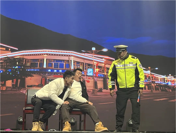 夜幕降临,华灯初上。演出在开场舞《欢腾工布江达》中拉开帷幕,舞蹈《金色麦浪》《工布情》、独唱《格萨尔王》《工布民歌》《感恩》、男子舞《蛇之林》、女子舞《热巴缘》等内容新颖、各具特色的文艺节目轮番上演、精彩纷呈。通过唱身边事、演身边人、说家乡美,完美呈现了浓郁传统文化和本地民族文化的大融合,展现了工布江达县人民幸福、民族团结、和谐平安的美好景象,表达了工布江达各族干部群众不忘初心、牢记使命,奋进新时代、踏上新征程,奋力建设改革开放先行县、生态文明引领县、民生幸福标杆县、民族团结模范县、和谐平安示范县的信心和决心。小品《酒驾》用诙谐幽默的方式,将酒驾的危害以轻松有趣的形式呈现出来,通过模拟交警查酒驾的场景,让观众在笑声中意识到酒驾的严重后果。不仅展现了生活中因酒驾引发的各种啼笑皆非的故事,还借此呼吁大家遵守交通规则,杜绝酒驾。