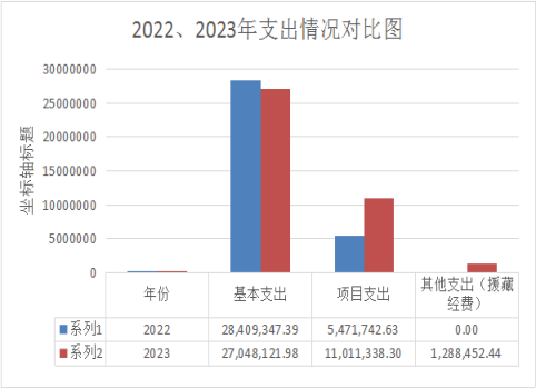 2023年总支出3805.94万元,2022总支出3388.11万元,2023较2022年增加了417.84万元,增长了12%,项目支出增加了标准化建设支出和2022年的创城经费。